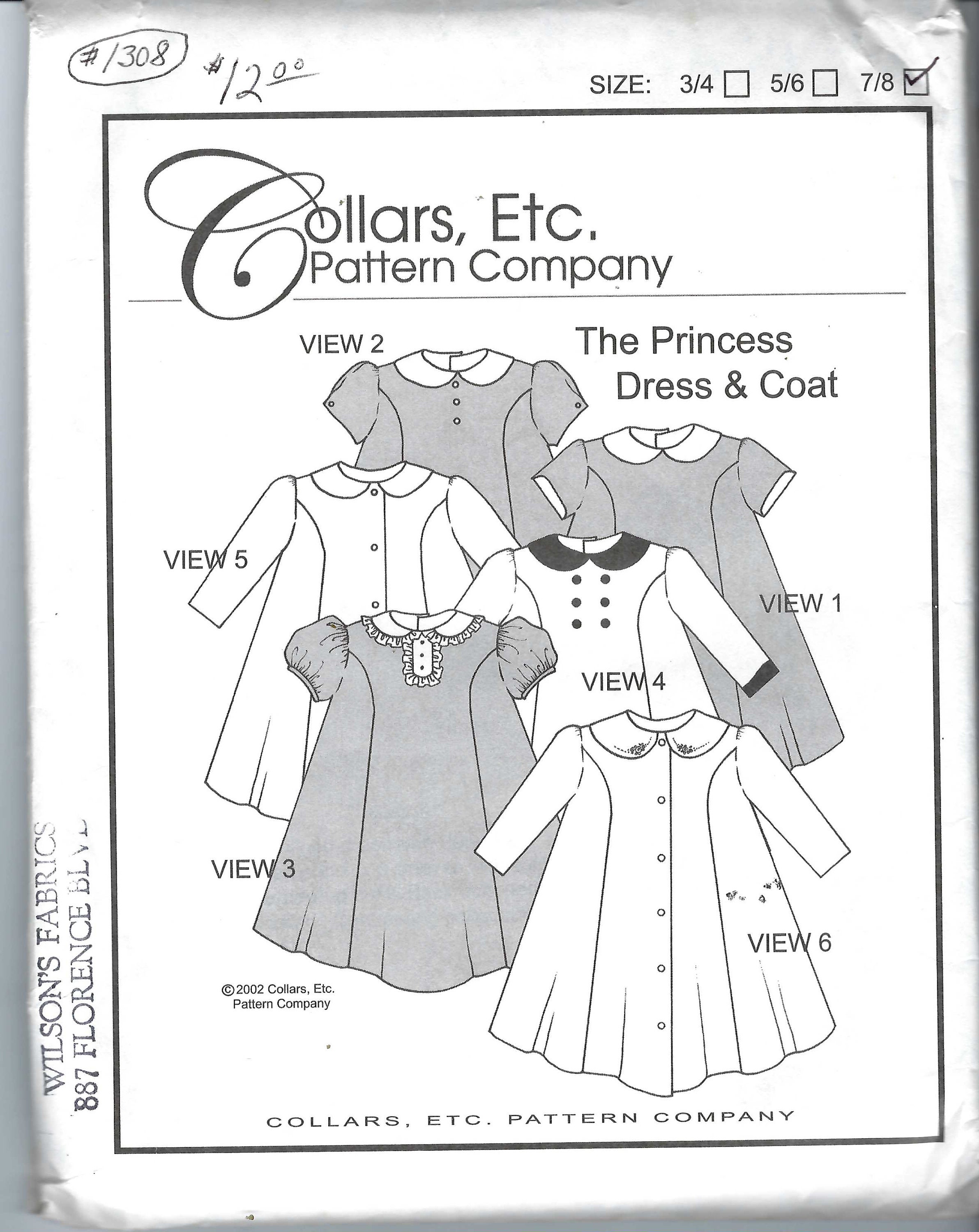 Uncut Collars Etc Sewing Pattern Sizes 7 8 The Princess Dress Etsy
